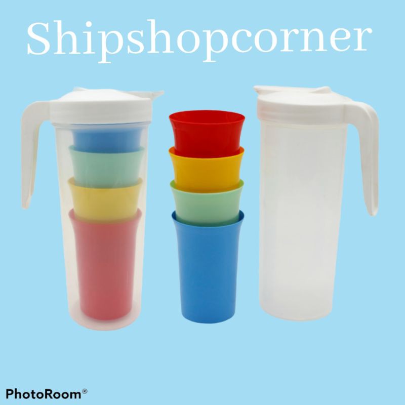 Spesifikasi :Uk. Teko Dia. 9.5cm x T.24cm Uk. Gelas. Dia 8cm T.11.5cm x 4 PcsBhn : Plastik PP - BPA FREE - FOOD GRADETeko : 1.3 Ltr Gelas : 350mlHarga Per Set ( 1 Teko + 4 Gelas )Ada Seal/Karet di Teko (Mencegah b