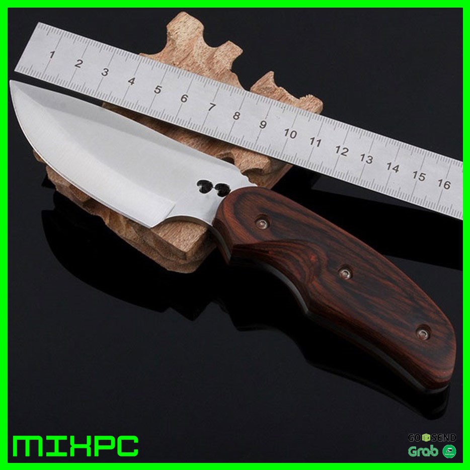 1 x Buck Elf Hunting Knife / Pisau Berburu1 x knife sheathLength: 20cmKinfe Thickness: 3mmPisau dengan bentuk yang unik dan elegan ini cocok untuk para kolektor pisau. Dengan design gagang kayu membuat pisau ini tampak elit dan berkelas. Memiliki sarung pisau untuk memudahkan Anda membawa pisau ini.Stainless MaterialDengan material Stainless 56 HRC membuat pisau ini kokoh dan awet untuk digunakan.Ergonomic HandleGagang pisau terbuat dari kayu berkualitas dan bentuk ergonomis sehingga memberi kenyamanan saat digenggam.Knife SheathTerdapat sarung pisau yang terbuat dari material kain. Sarung ini memiliki ruang yang sangat pas dengan bentuk pisau ini untuk mencegah pisau terlepas secara tidak senga