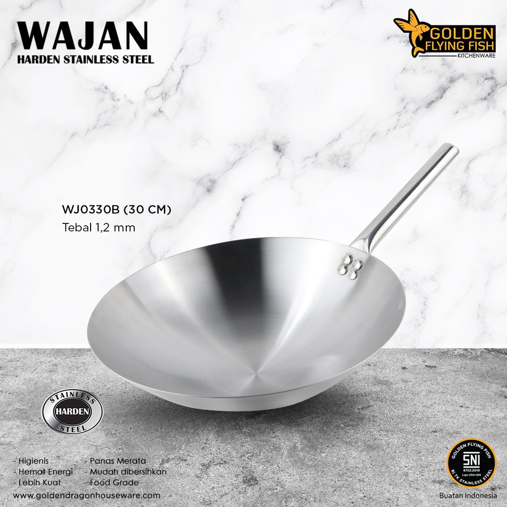 Name: Wajan Penggorengan Stainless Stell Anti Lengket Ukuran 30 Kuali Gagang Golden Dragon Anti Lengket